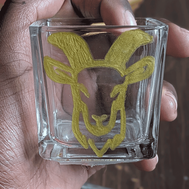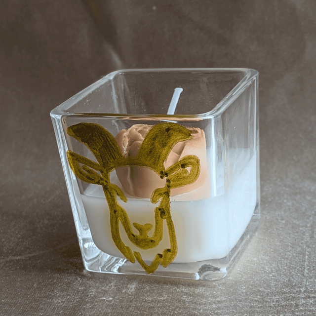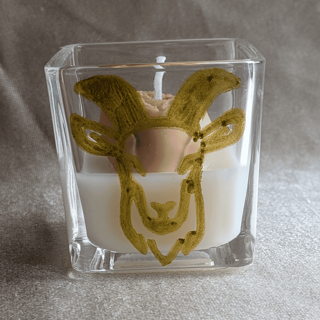 Bougie artisanale coulée à la main dans un verre gravé manuellement, représentant le signe astrologique chinois Chèvre.