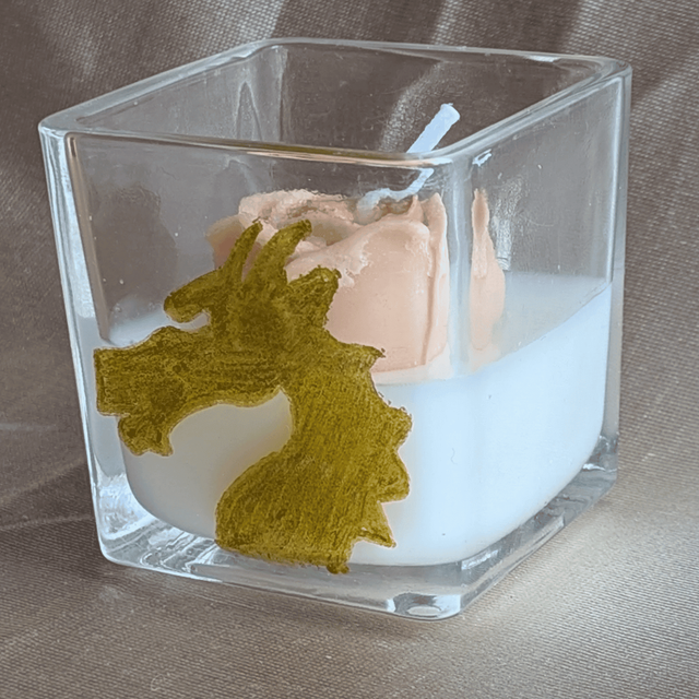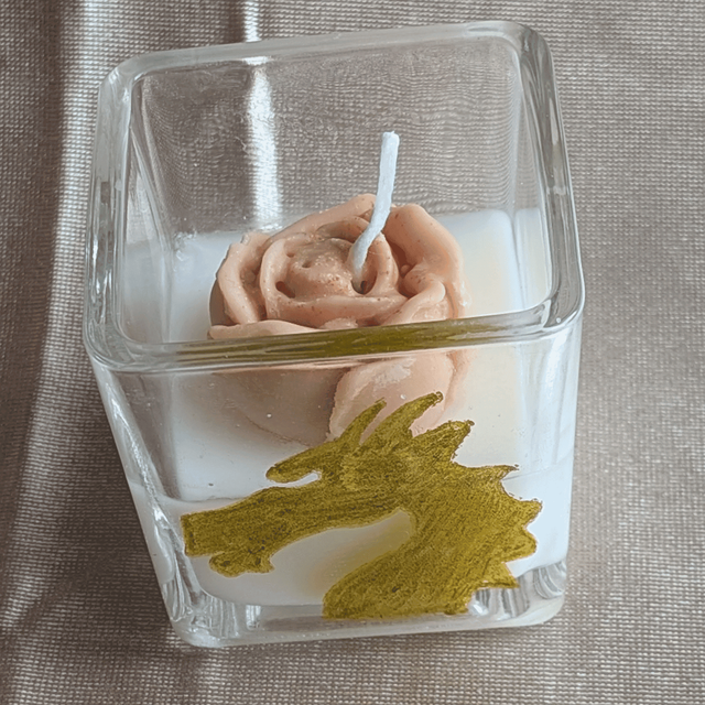 Bougie artisanale en verre gravé à la main, inspirée du signe astrologique chinois du Dragon.