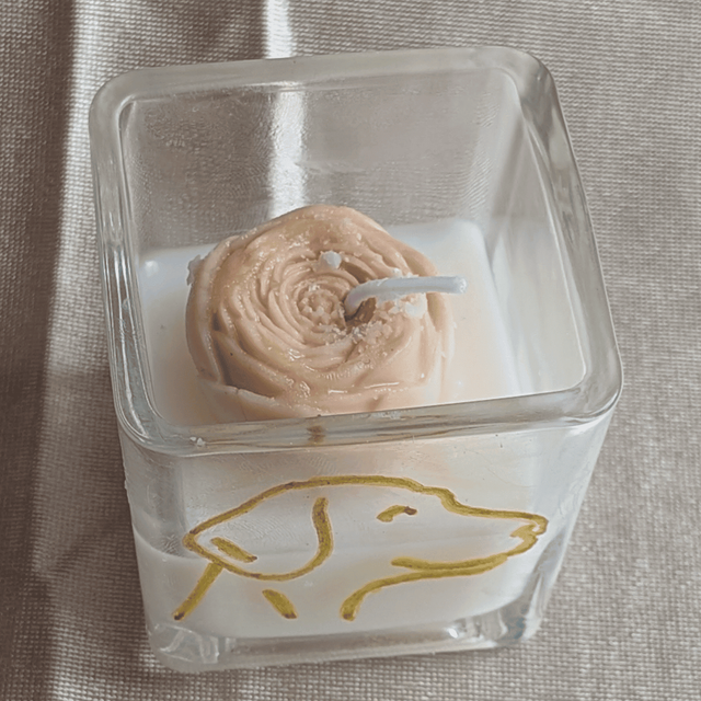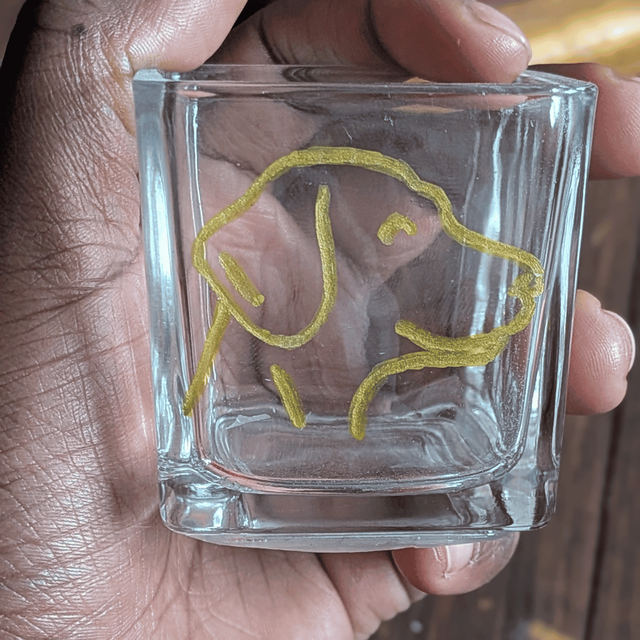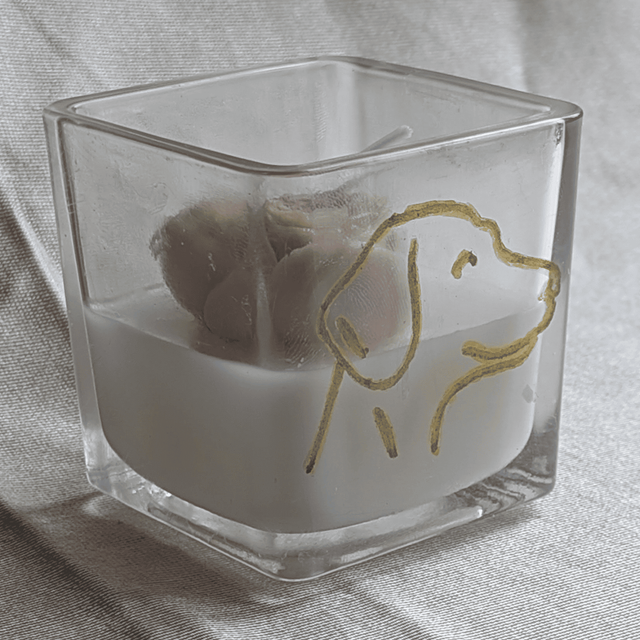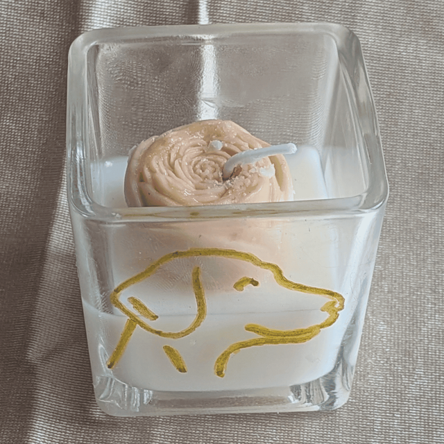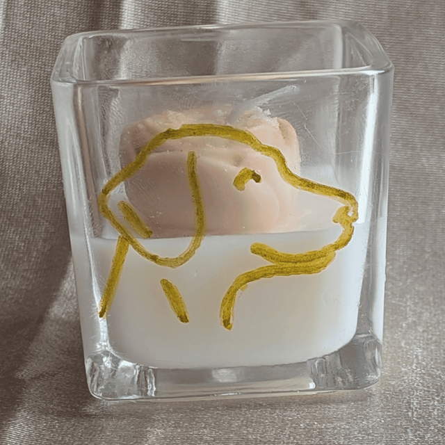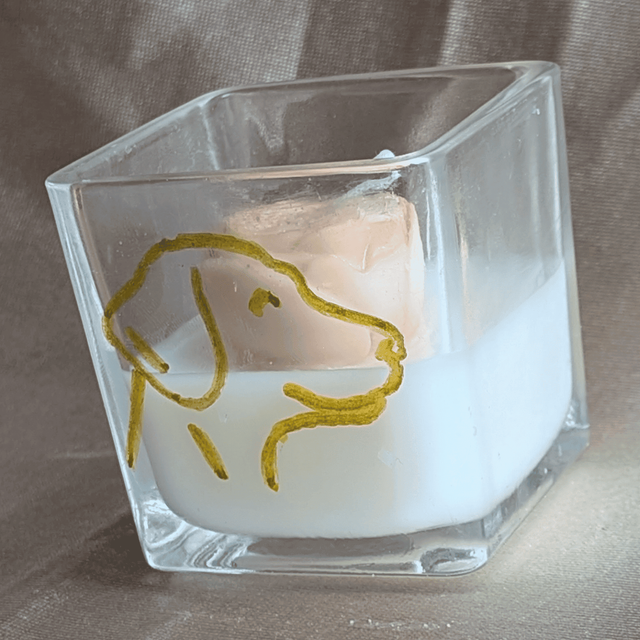 Bougie artisanale coulée à la main dans un verre gravé, dédiée au signe astrologique chinois du Chien, symbole de loyauté et de