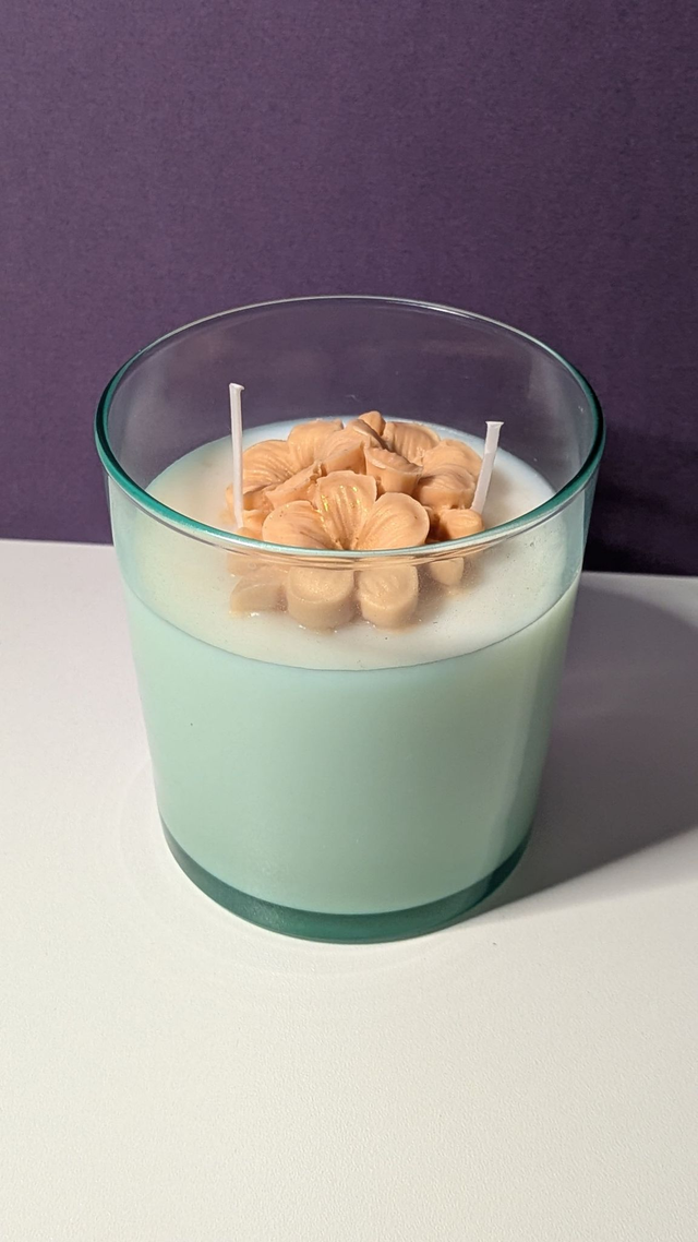 Bougie en verre vert – Fleur de Frangipanier parfum Citron vert