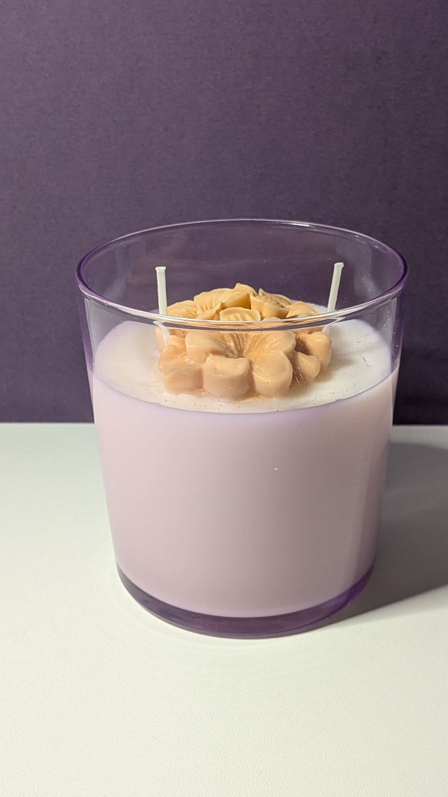 Bougie en verre Violet – Fleur de Frangipanier parfum Monoï