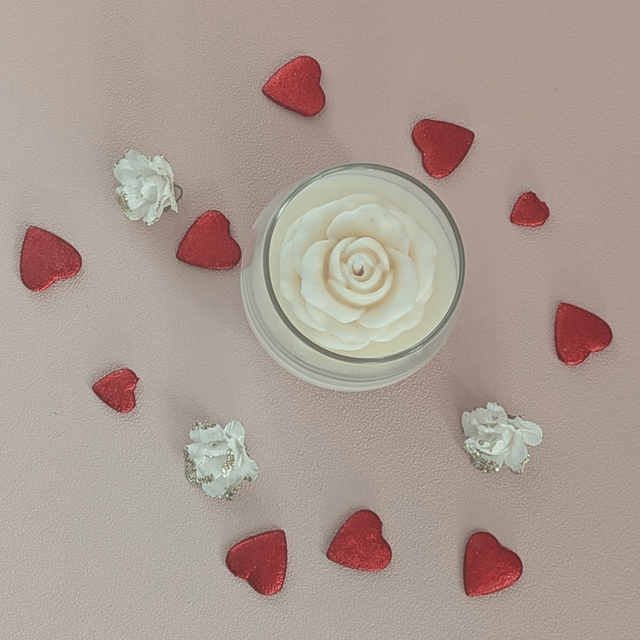 🕯️ Bougie Rose d’Amour 85g – Musc Blanc